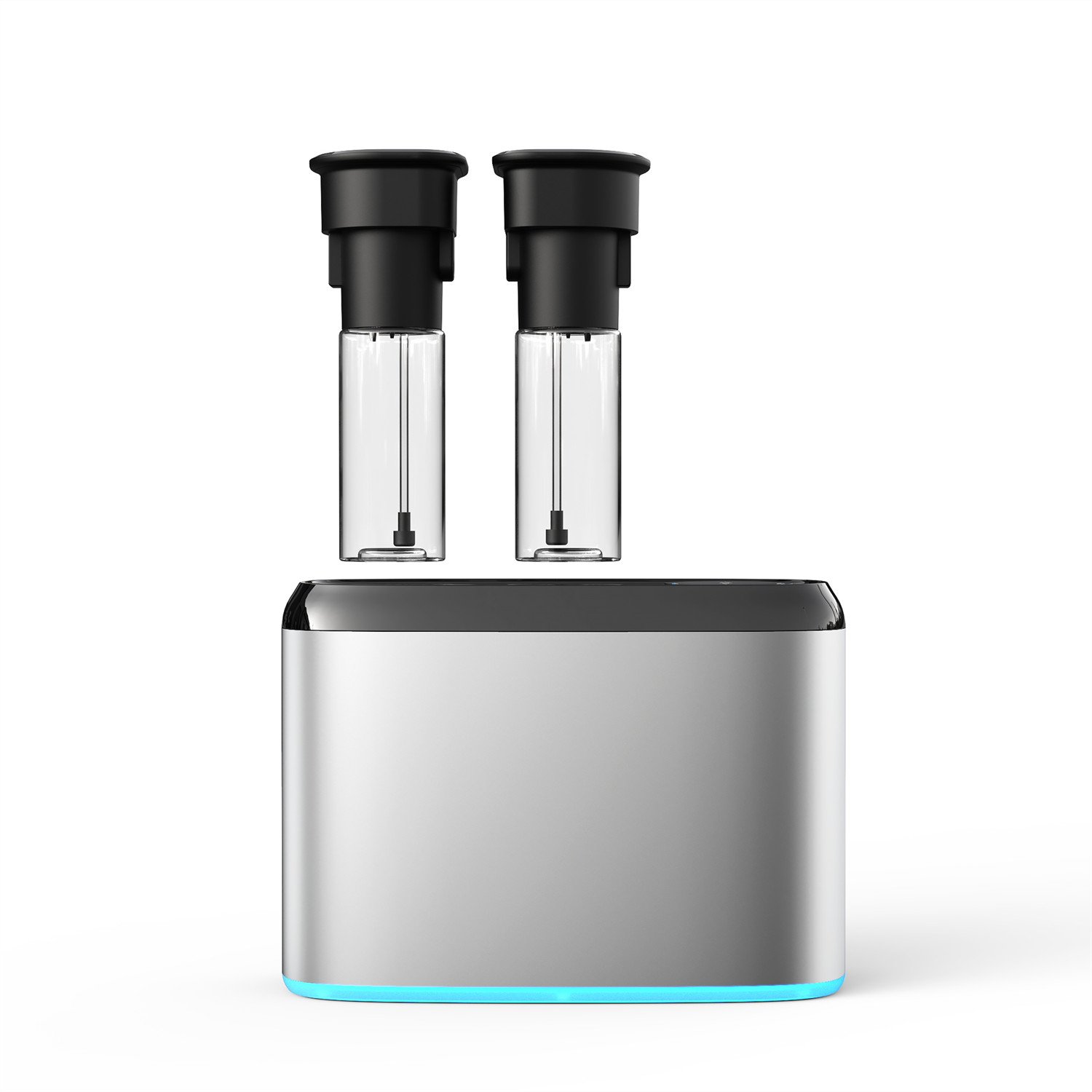 A: Система разработана для универсального переключения между двумя разными ароматами. Вы можете свободно переключаться между насадкой A и насадкой B через приложение или кнопки, чтобы мгновенно менять атмосферу в помещении, не меняя флаконы.