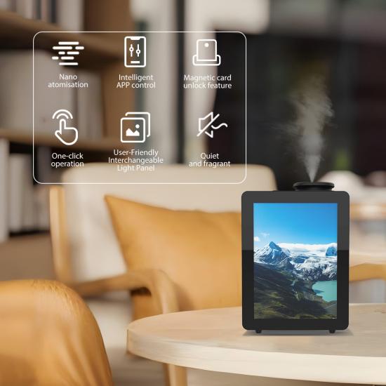 Этот умный коммерческий аромадиффузор объёмом 800 мл отличается долговечностью, красивым дизайном, прочностью и экономичностью. Он поддерживает стандартное и Bluetooth-управление, обеспечивая простое удалённое управление без подключения к сети. Доступны OEM/ODM-решения.